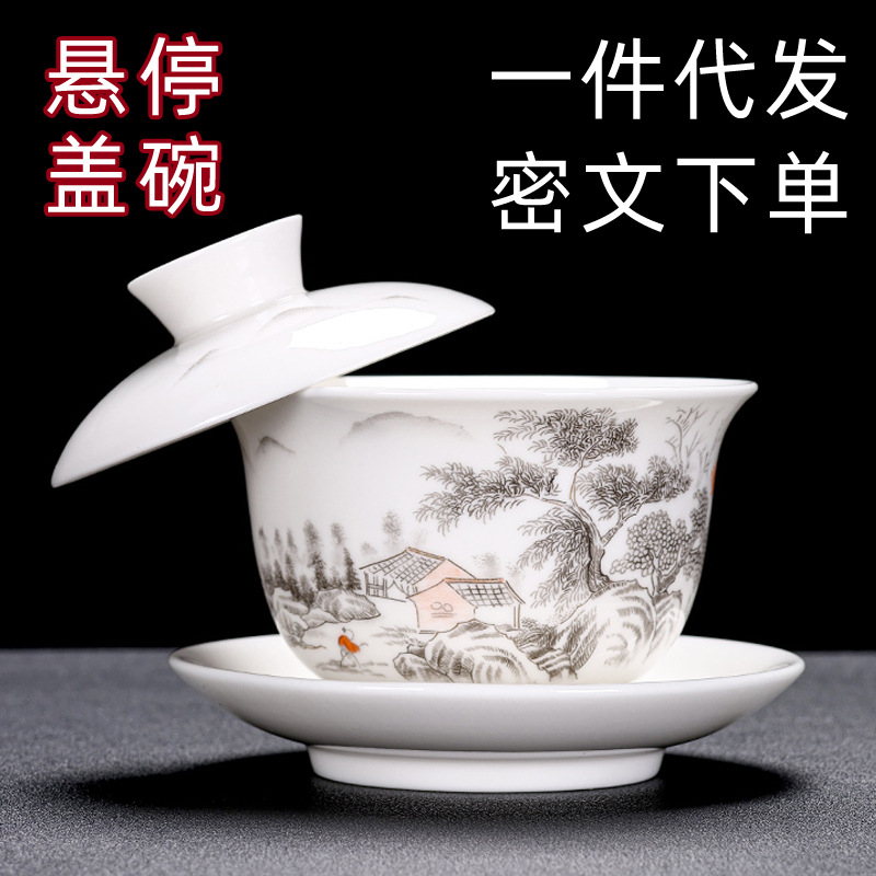至選蓋碗氷種玉磁器単一高級三才茶碗セット羊脂玉泡茶器家庭用白磁茶器