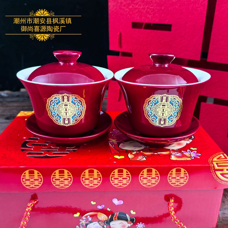 第一号紅陶磁器結婚祝い結婚敬茶対杯プレゼント夫婦子孫杯結婚祝い赤改口蓋碗