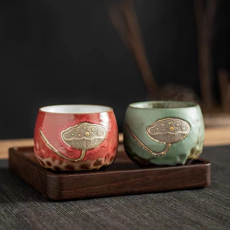 日本式窯変茶杯陶磁器工夫茶具単杯主人杯個人杯4杯セットプレゼントロゴ印刷
