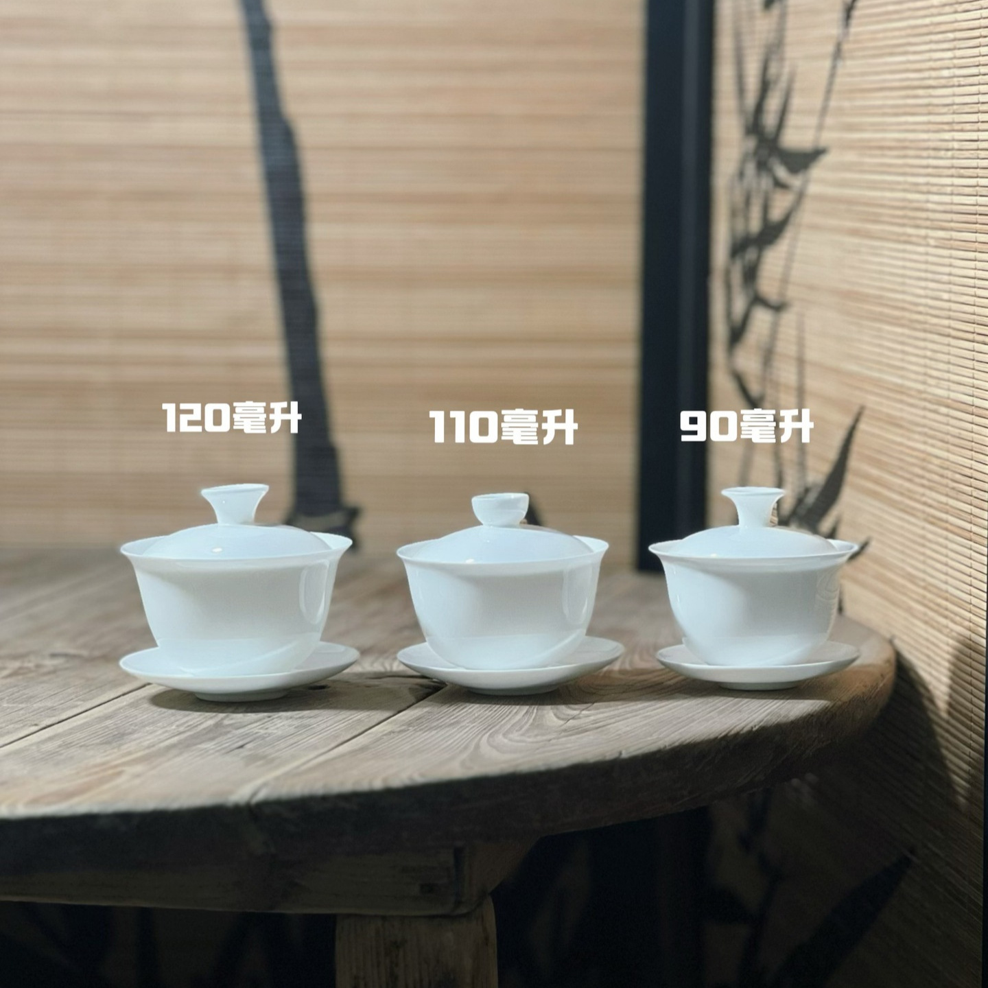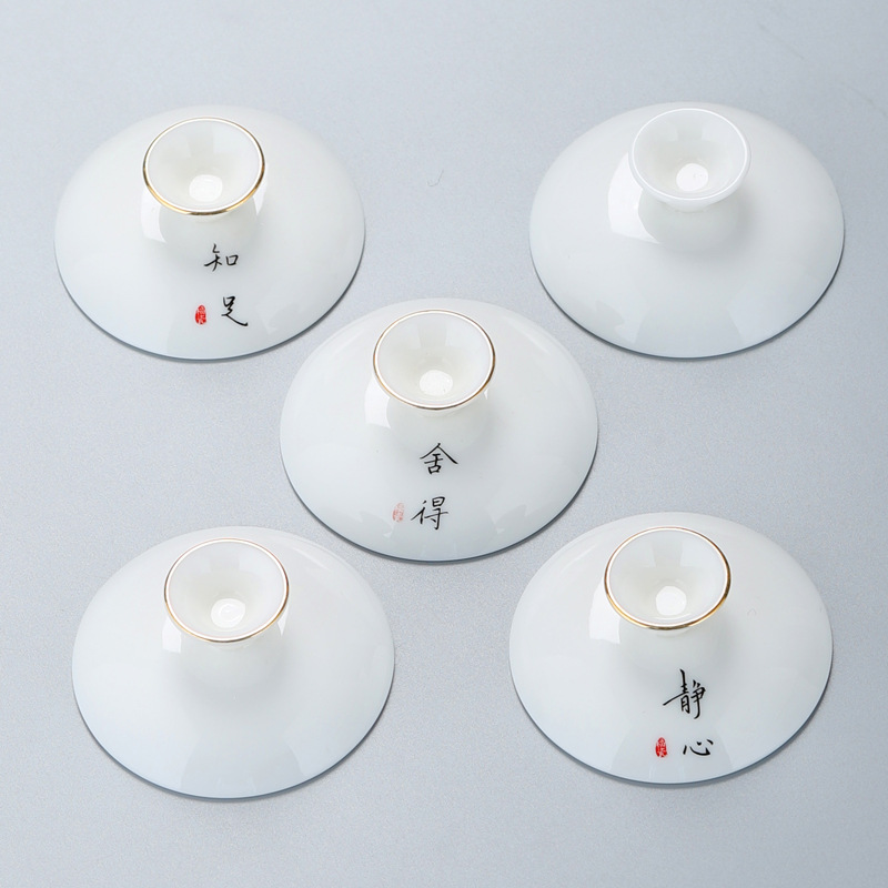 徳化羊脂玉白磁三才蓋碗単セット純白描金高級家庭用リビングオフィスの小さいサイズはお茶を入れます。