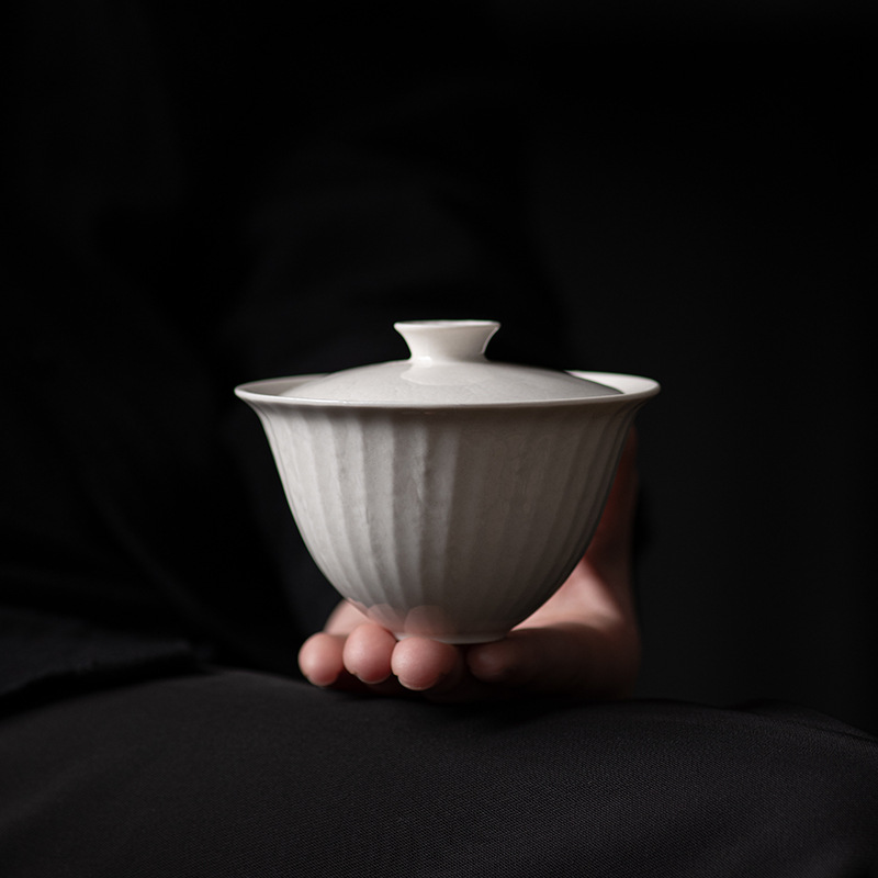 羊脂玉蓋碗三才は手を温めないで白い磁器の茶碗の家庭用高級なお茶の杯の工夫の茶器を停止します。