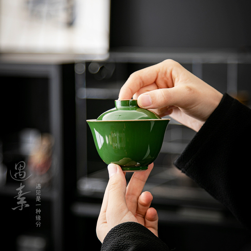 セラミックシャドウグリーン絶妙なカバーボウル中空三才カバーボウルティーボウル家庭用カンフーティーセットカスタムビジネスギフト
