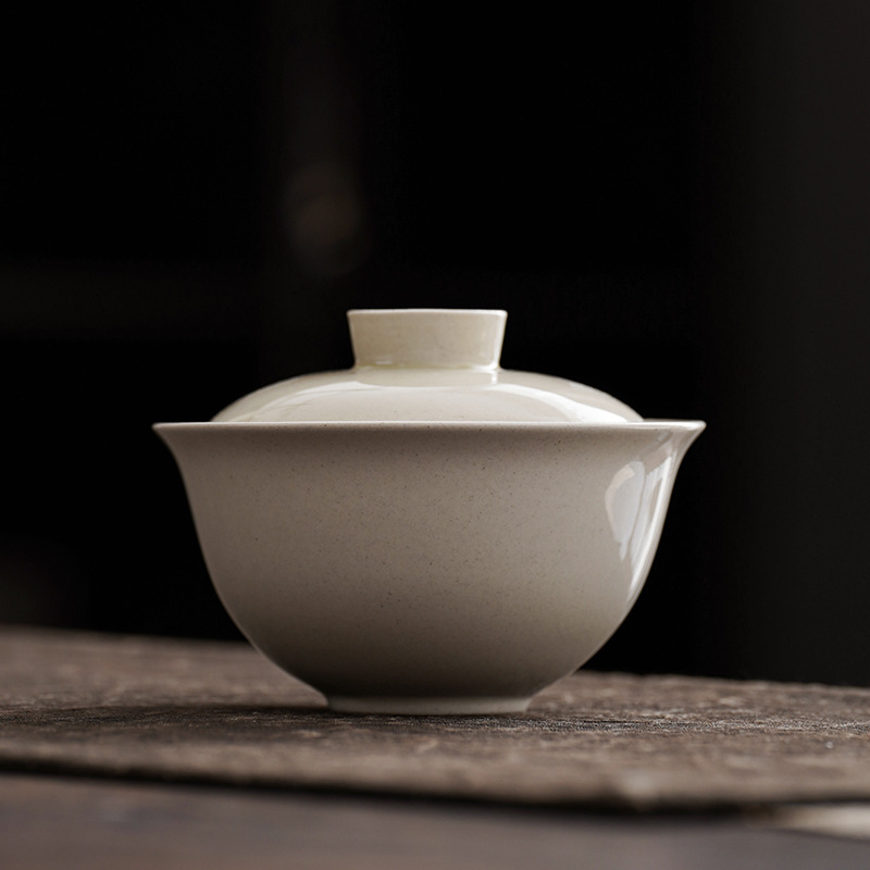 レトロな草木灰二才蓋ボウル家庭用シンプルなセラミックカンフーティーセットティーボウル水筒ティーカップベース