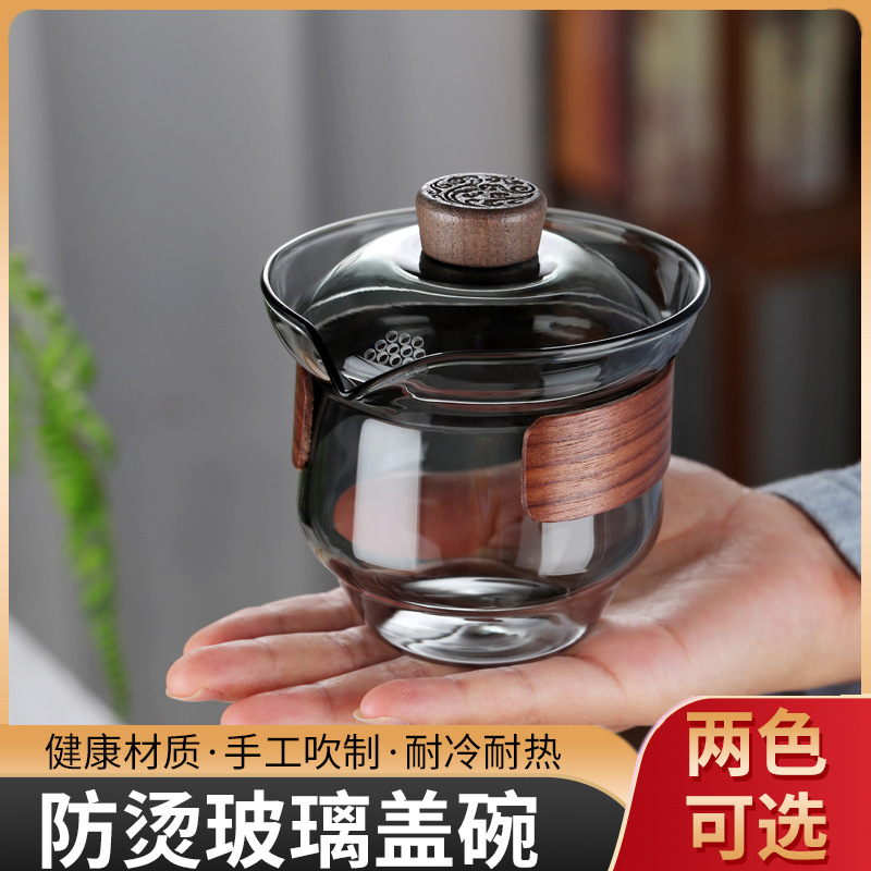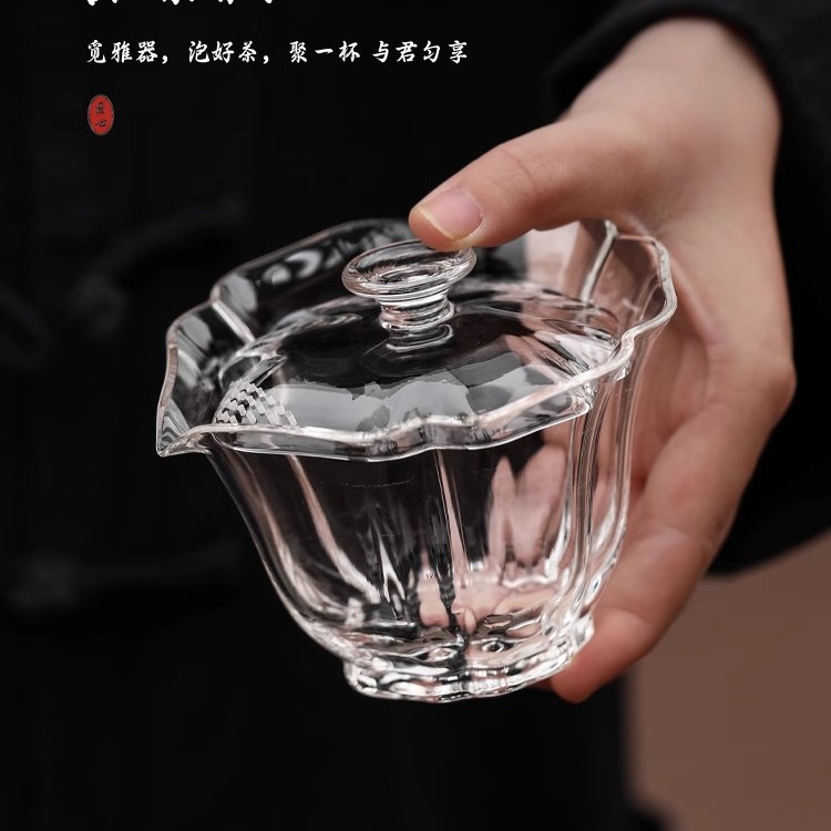 高級ガラス蓋ボウル、シングル緑茶ティーメーカー、火傷防止、手に優しいカップ、高級透明ハンドポット、カンフーティーセット