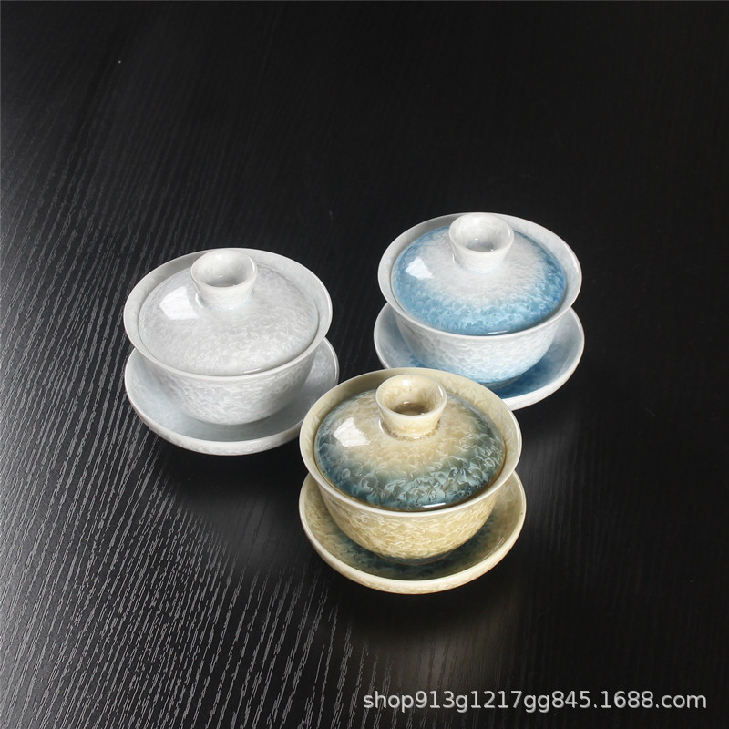 結晶釉薬窯変陶磁器三才蓋碗家庭用工夫茶器茶わん創意手捕碗茶わん