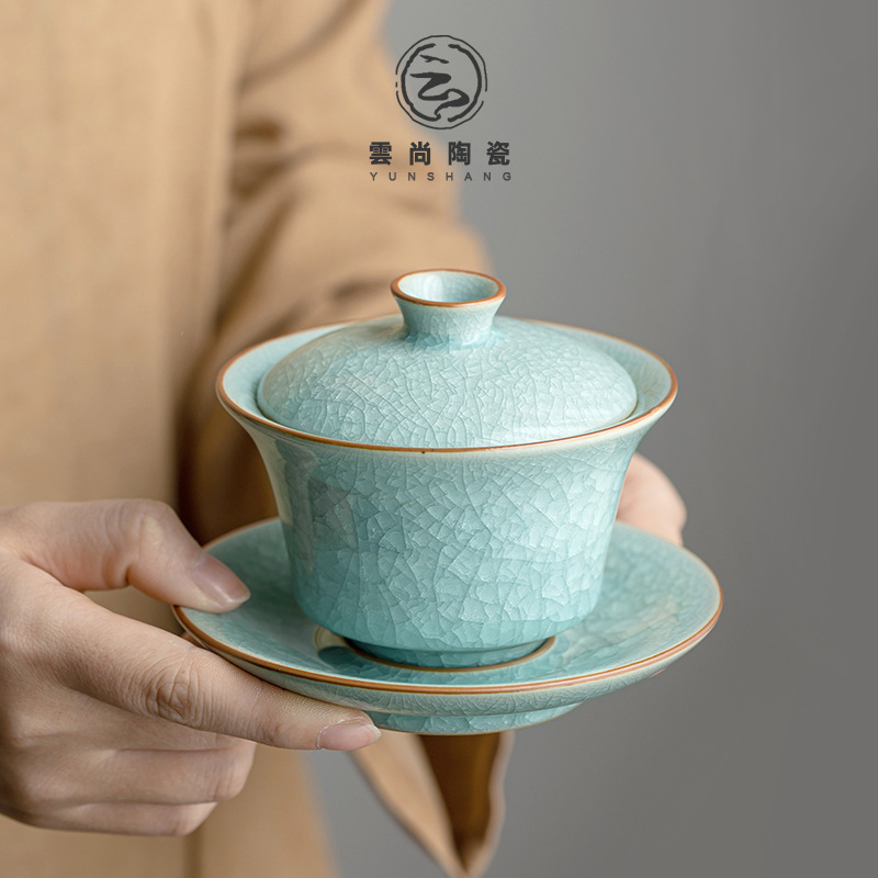 汝窯蓋碗開片の規格品は穴があります。家庭用の三才蓋碗の手で壺をつかんでお茶を入れます。