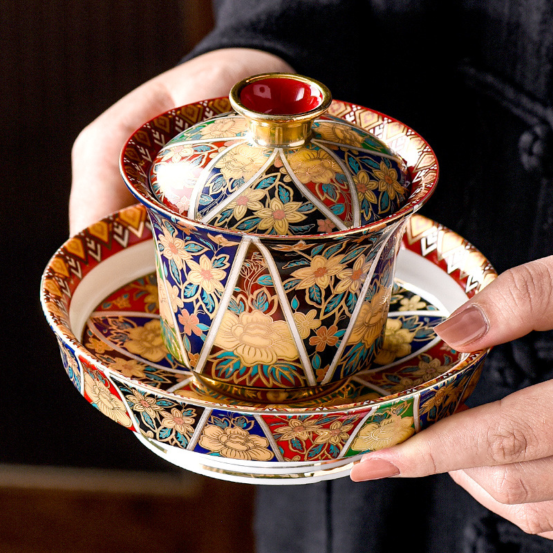 青山小野エナメル彩三才蓋碗陶磁器単敬茶碗日本式工夫茶具高級贈り物茶碗