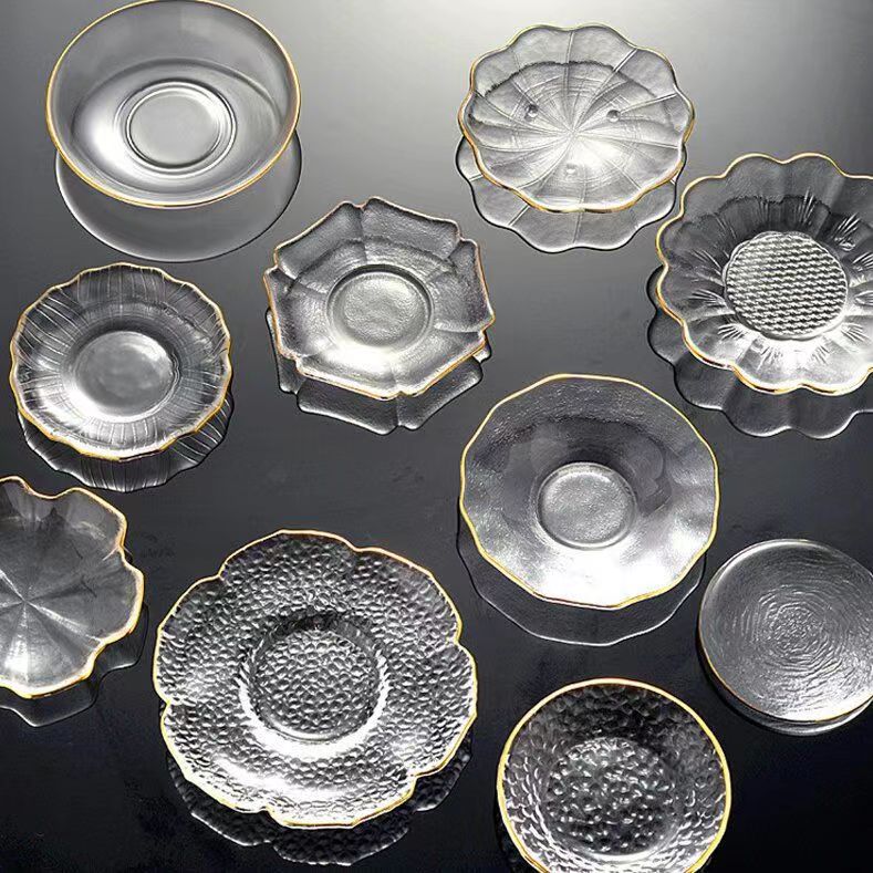 日升源日本式円形ガラスコースター茶器部品茶マット創意手作り工夫茶杯托ガラス皿