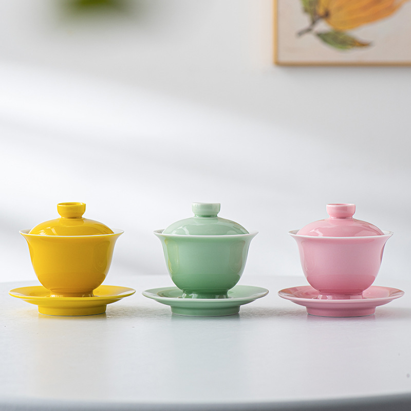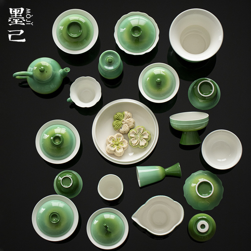 墨己覚醒春集翡翠緑シリーズグラデーション手描き陶磁器茶器合集蓋碗ティーポット主人杯