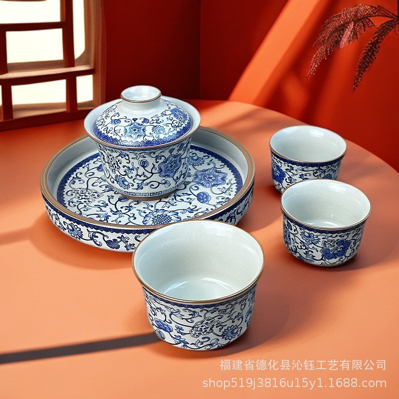 藍青磁三才蓋碗創意工夫茶器泡茶碗卸売り注文陶磁器大蓋碗茶杯