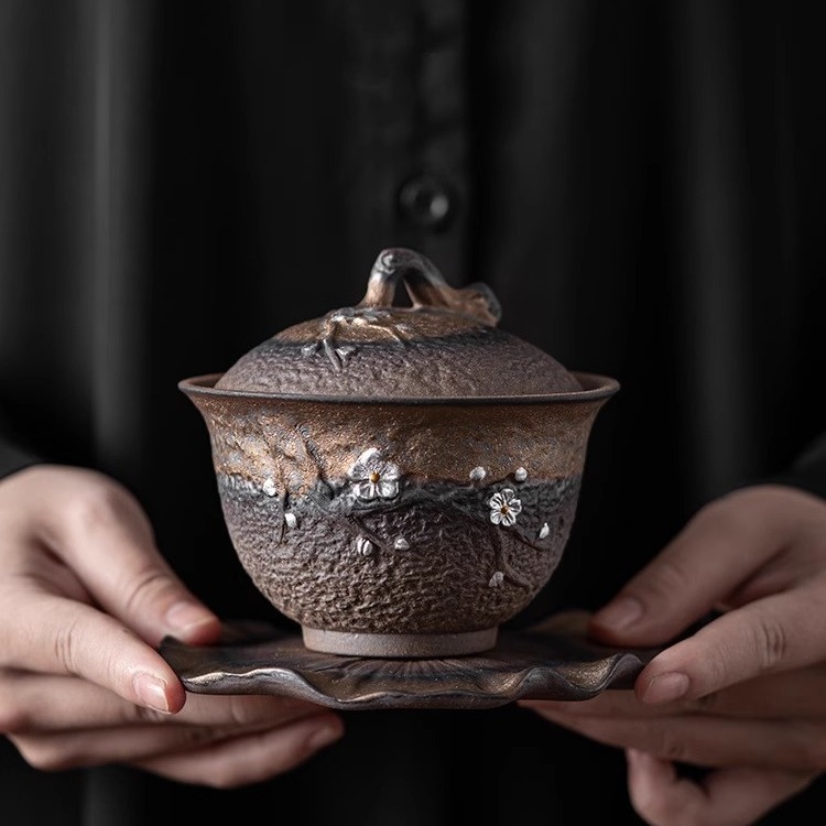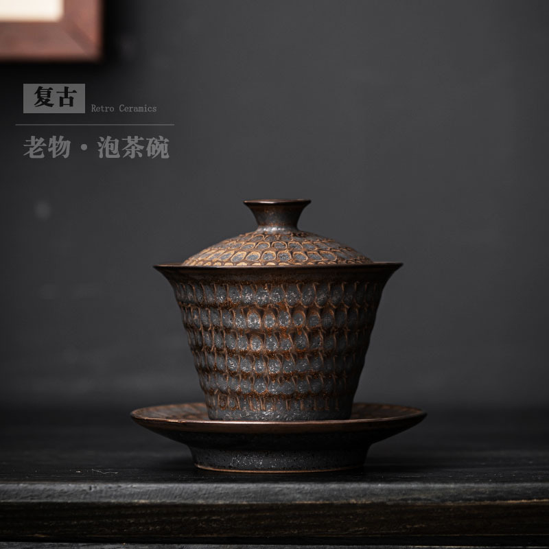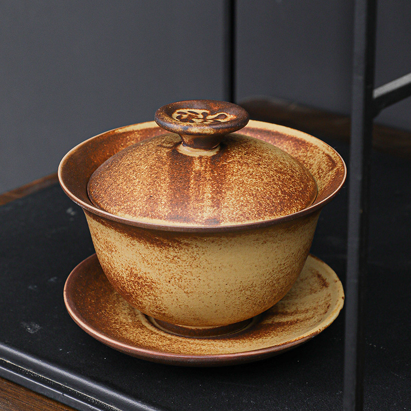 粗陶金手作り三才蓋碗日本式泡茶碗単一蓋付家庭用陶磁器工夫茶器茶杯
