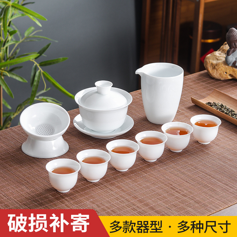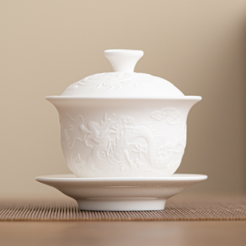 茶器家庭用陶磁器工夫茶器セット羊脂玉磁器素焼きレトロセット龍鳳浮き彫りカップ蓋碗