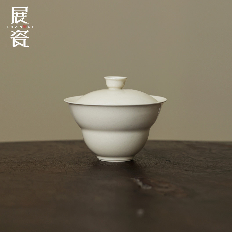 羊脂の玉の陶磁器の工夫の茶器の蓋の碗の徳化の白磁の3才の蓋の碗の茶器の部品はお茶の碗にお茶の碗を入れます。