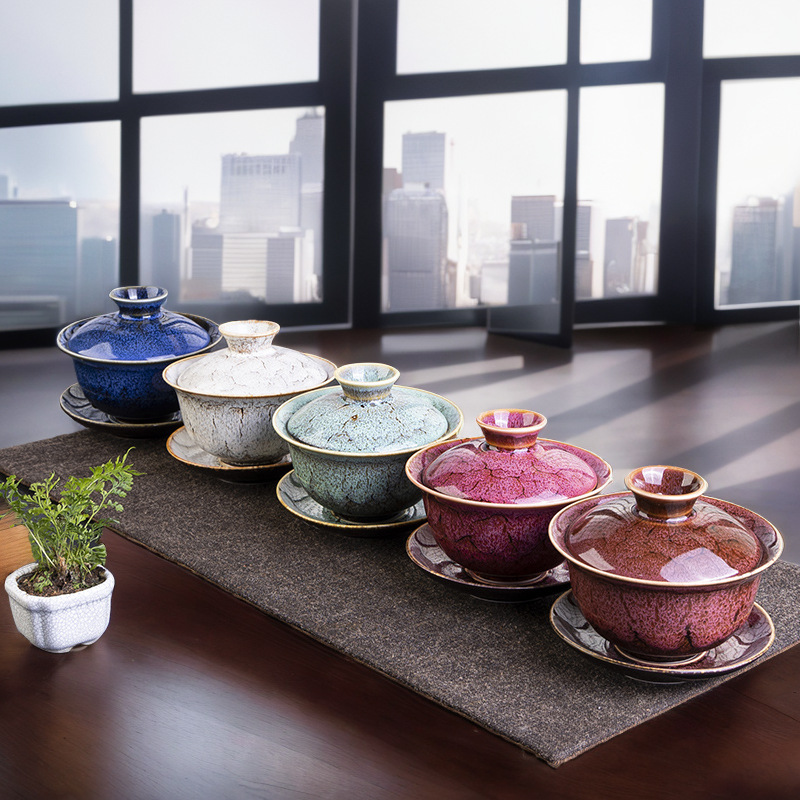 窯変蓋碗工夫茶道具敬茶杯三才蓋碗家庭用茶器単一の小型茶碗卸売り