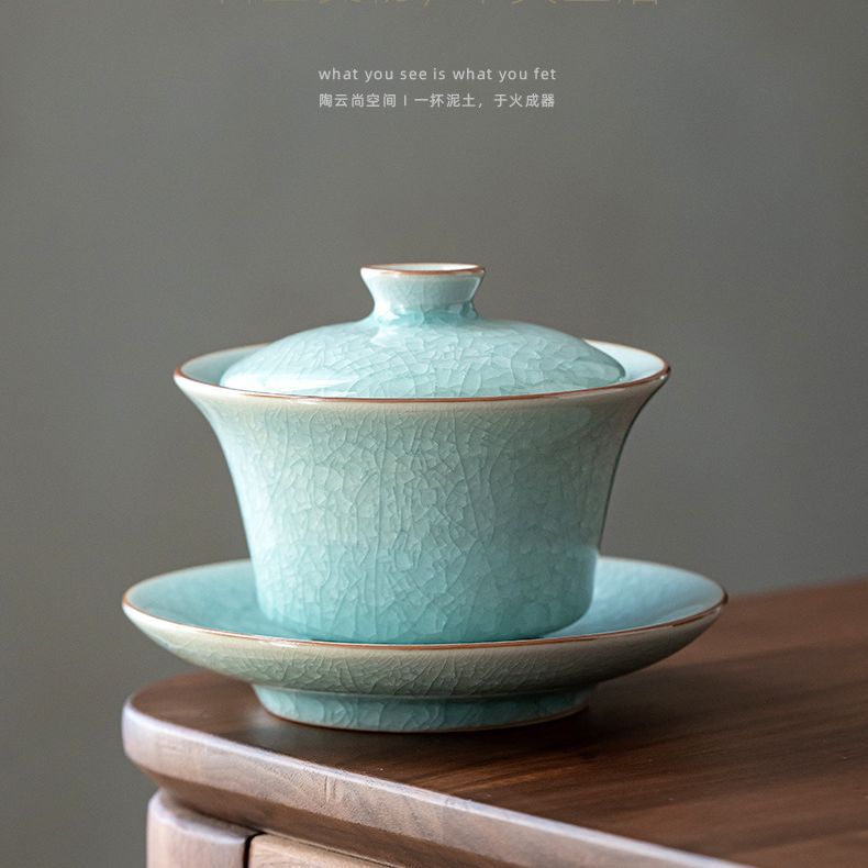 汝窯蓋碗茶杯三才碗開片氷花釉工夫茶器敬茶碗大サイズ家庭用茶器単一