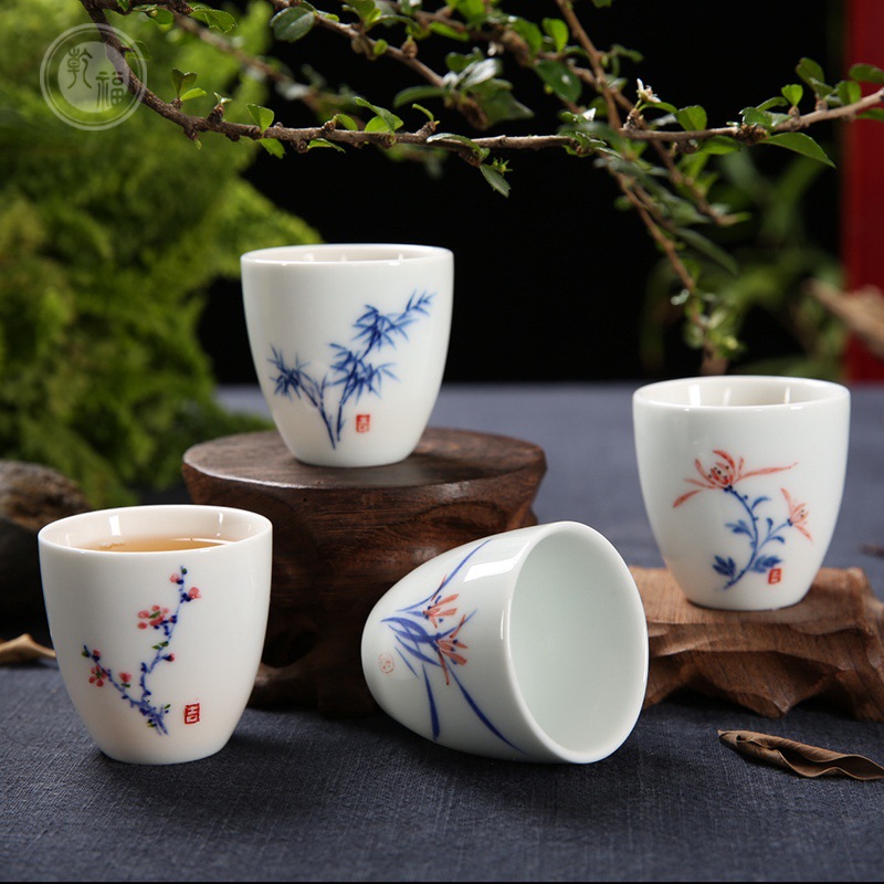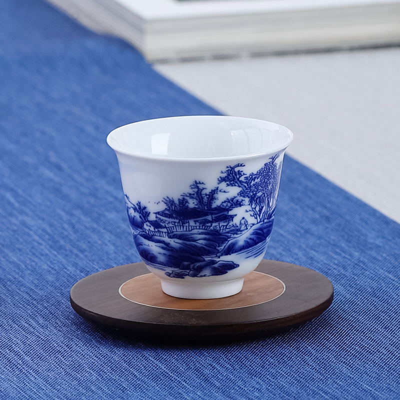 手描き模造青花品茗杯陶磁器工夫茶器主人杯個人小単杯