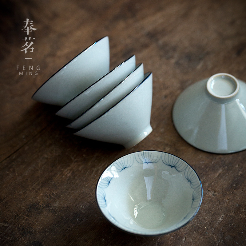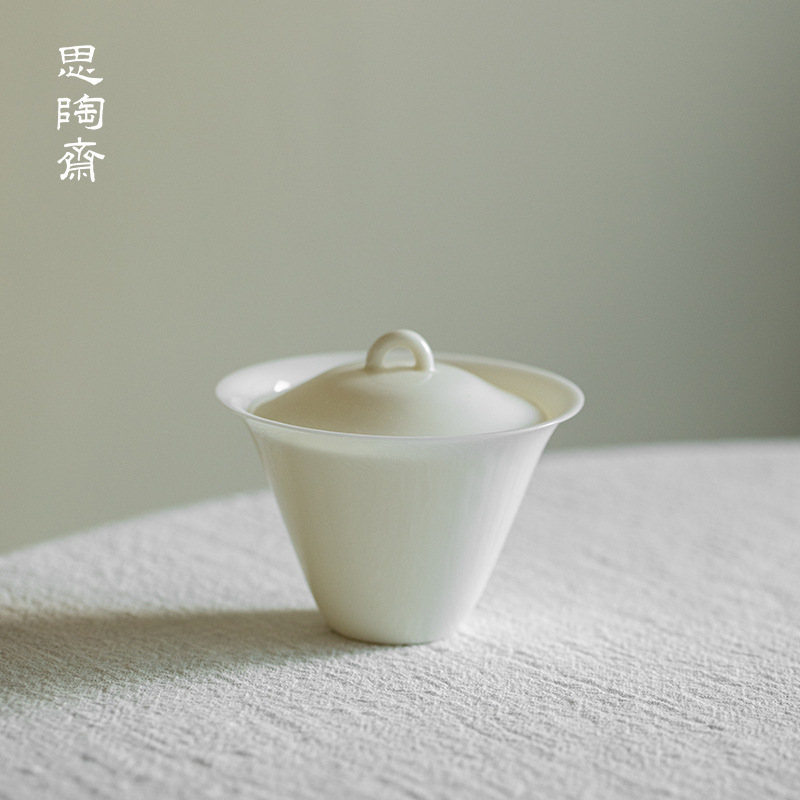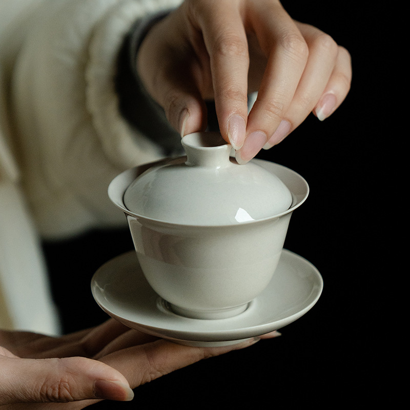 九匠風徳化白磁器蓋碗薄胎手力茶器三才蓋碗書道泡茶碗手掴み碗