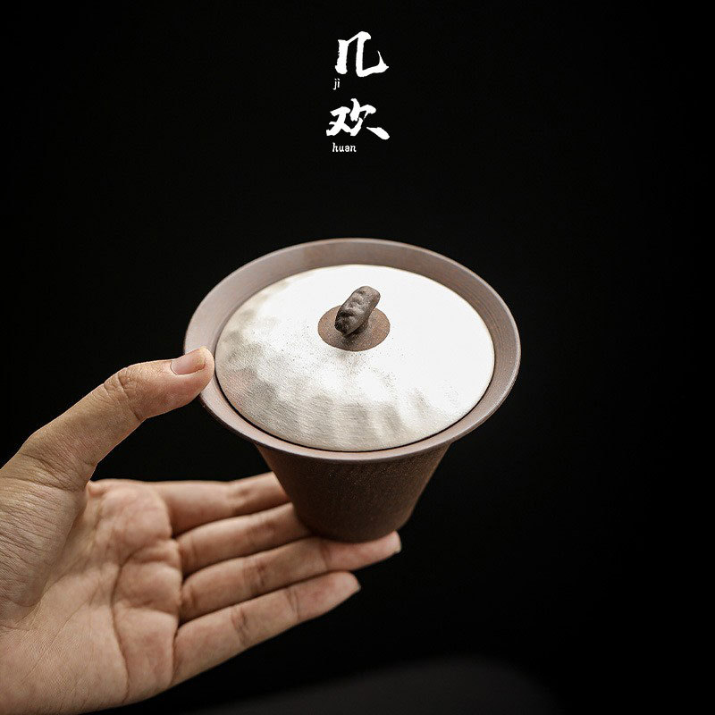 何歓の古い岩の泥の手作りの純度の銀の2才は碗の工夫の茶器の復古の禅意の陶磁器の家庭用のお茶の碗の茶器をかぶせます。