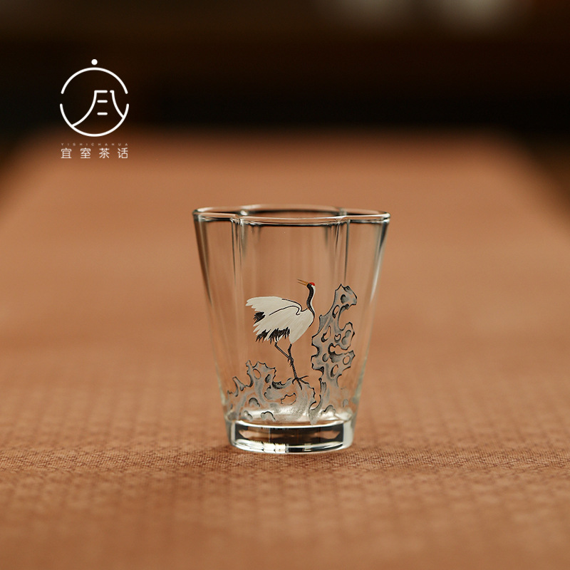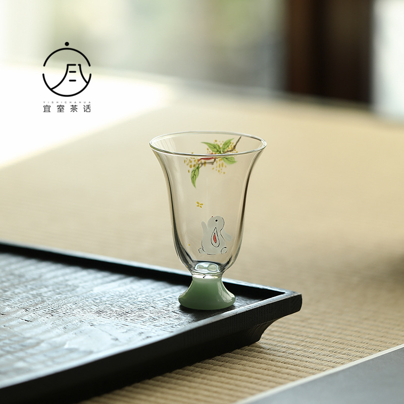 宜室茶話桂花高足鈴杯手作りステッカー耐熱ガラスカップ家庭用品茗杯