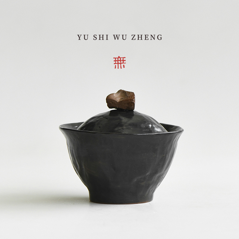 わびさび黒陶蓋ボウル 和風手作り粗陶器カンフー茶碗 二才禅陶器蓋ボウル ティーカップ