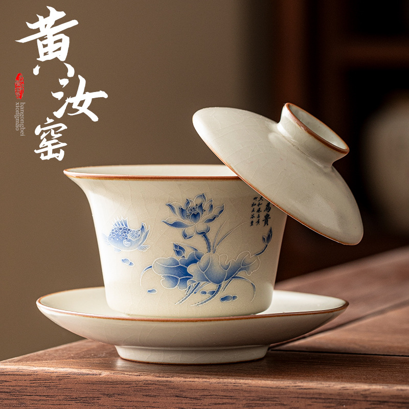 Ru Kiln Sancai カバー付きボウル、ホバーティーボウル、単一の非火傷性茶カンフー茶セット、高級家庭用セラミックティーカップ