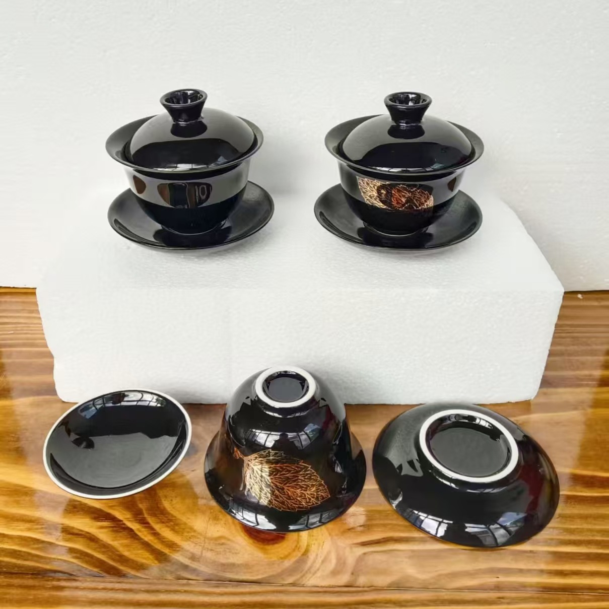 黒釉150mlの小さいサイズの3才の蓋の2才の蓋は底托の釉薬の陶磁器の家庭の客間の事務を売ってお茶を入れます。