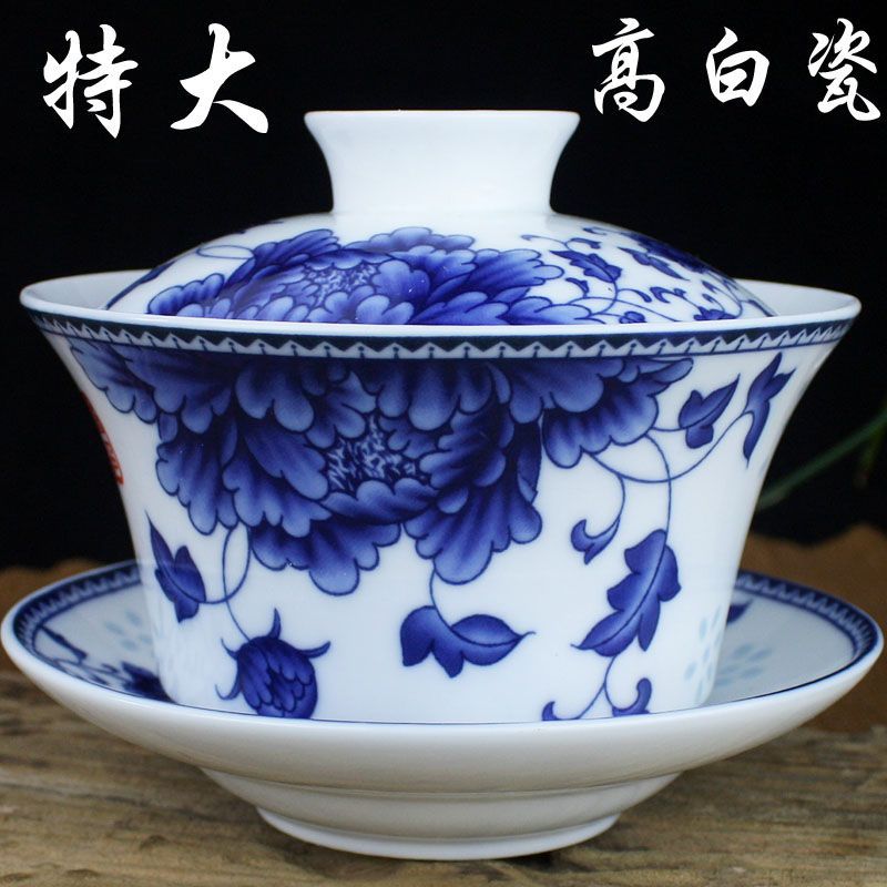 青花羊脂玉三才蓋碗ホバリング復古大容量の枝蓮は単独で手を温めない陶磁器のお茶を入れます。