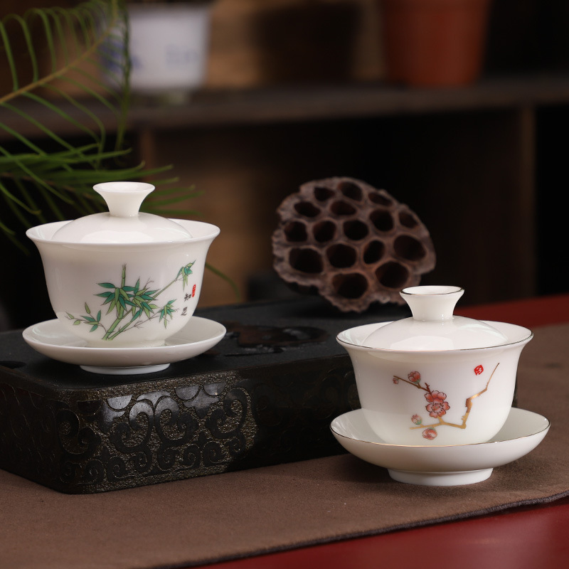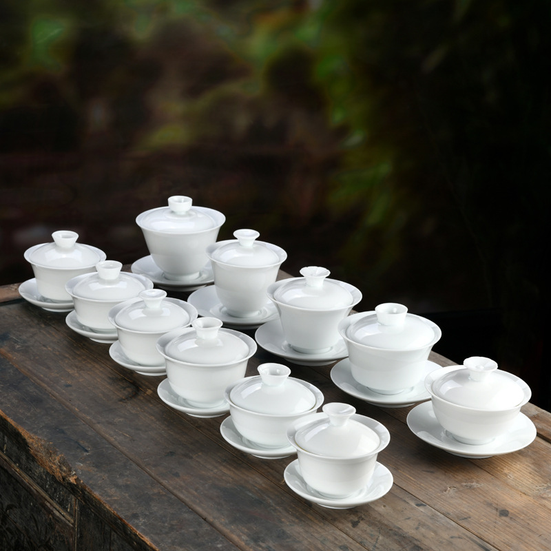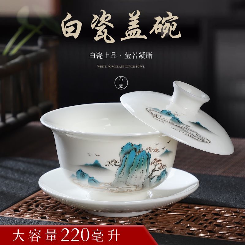 ホバリングカバーボウル羊脂翡翠三才徳化シンプルオフィスティーカップホームカンフーティーセット高級ティーボウルリビングルーム