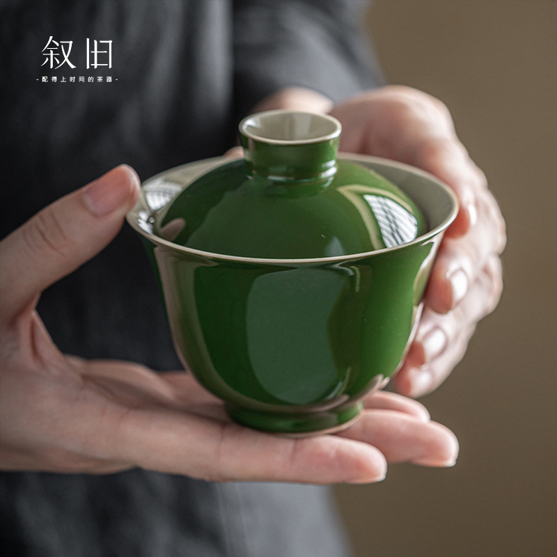カラー釉翡翠グリーンセラミックティーセット家庭用カバーボウルカンフーティーカップシンプルなティーポットティーカップライト高級ハンドボウル