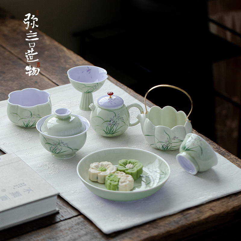 ミヤン釉下色純粋な手描き蘭蓋ボウルティーポットセラミックティーカップマスターカップフェアカップコレクションカンフーティーセット