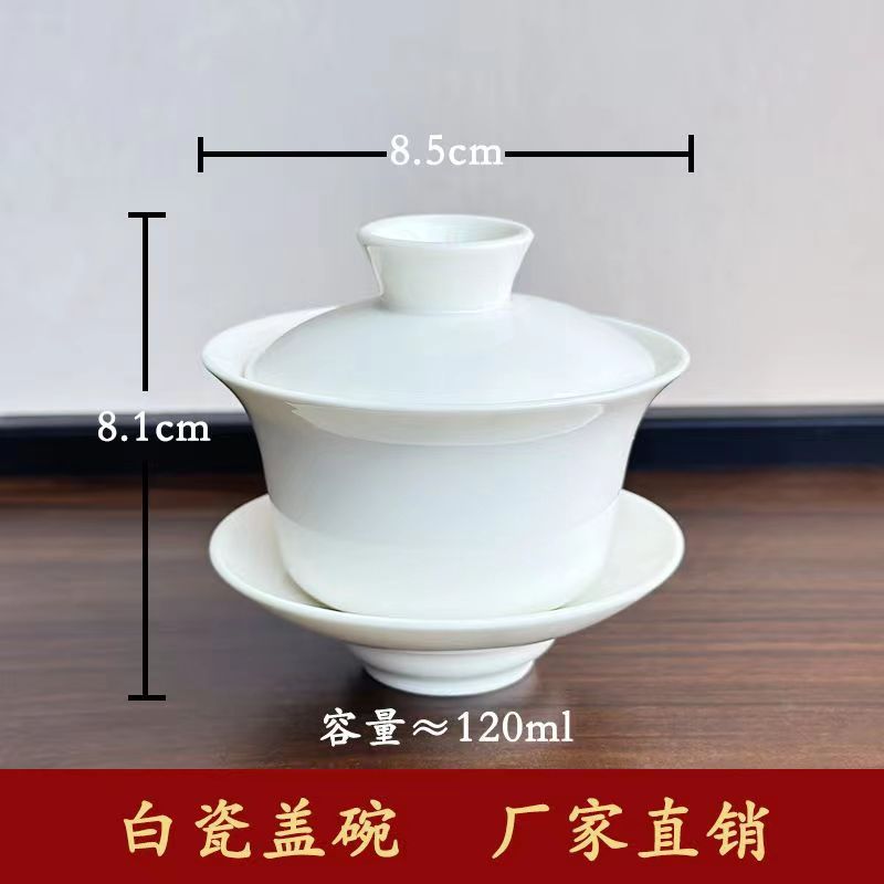 Dehua 白磁カバーボウル ティーカップ 家庭用 Sancai ボウル シングル 大、中、小 ホワイト ティーボウル 会社ロゴ お土産