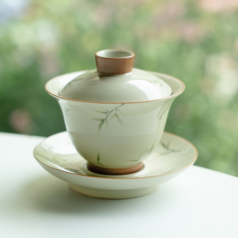純粋な手描きの篠竹の円満な蓋の碗の単一の家庭用の陶磁器の茶碗の湯飲みは茶器を温めません。
