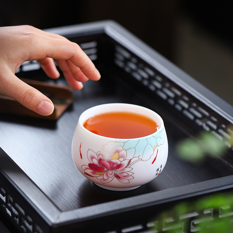 エナメル彩斗笠杯花杯大サイズ茶碗粉彩掻花品茗杯主人杯単杯茶器セット
