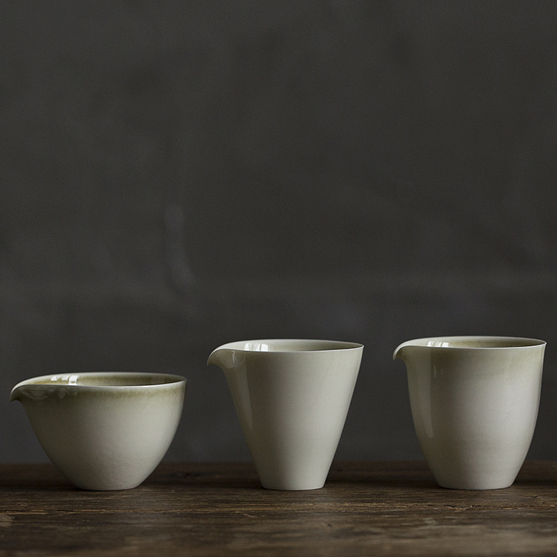 景徳鎮の陶磁器の手作りの草の木の灰色の釉薬の日本式は古風な水滴の公道の杯の杯のお茶の海をまねて茶器を分けます。