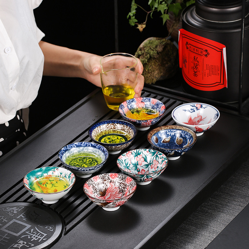 カラー青花磁器闘笠杯茶碗カンフー茶器主人杯茶杯単杯品茗杯卸売り
