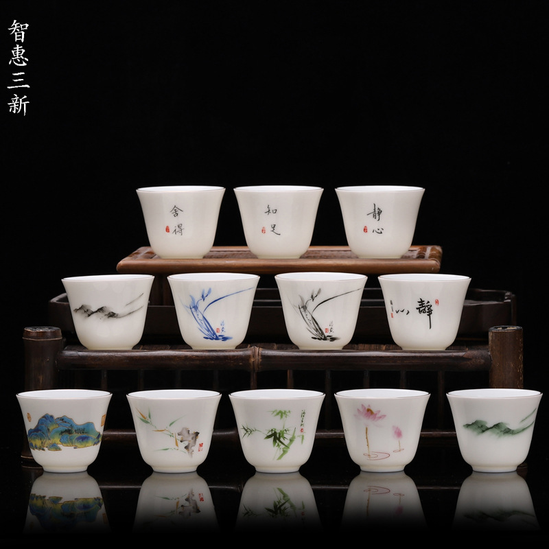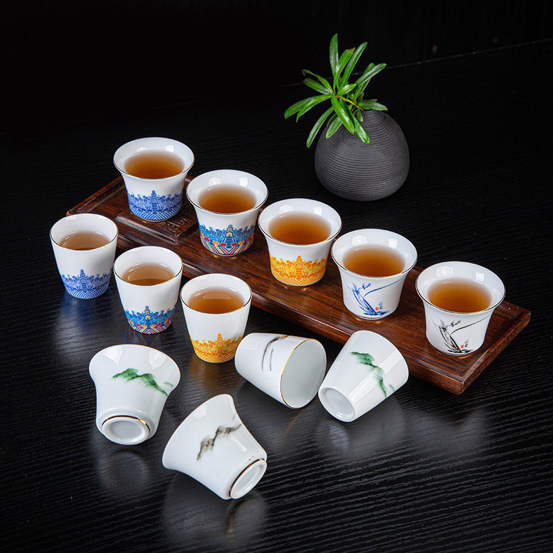 白磁茶杯個人杯羊脂玉カンフー茶杯陶磁器描金辺品茗杯主人杯ギフトカップ