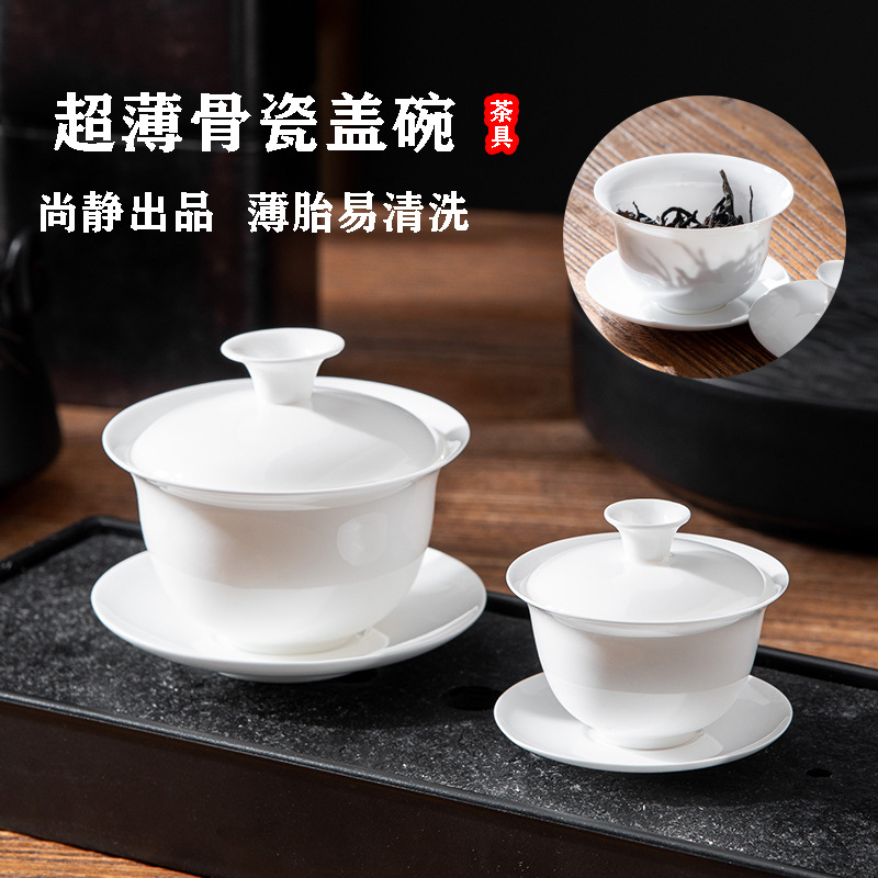 尚静潮汕超薄単骨磁器蓋碗三才杯一人で蓋碗茶杯陶磁器家庭用工夫茶器