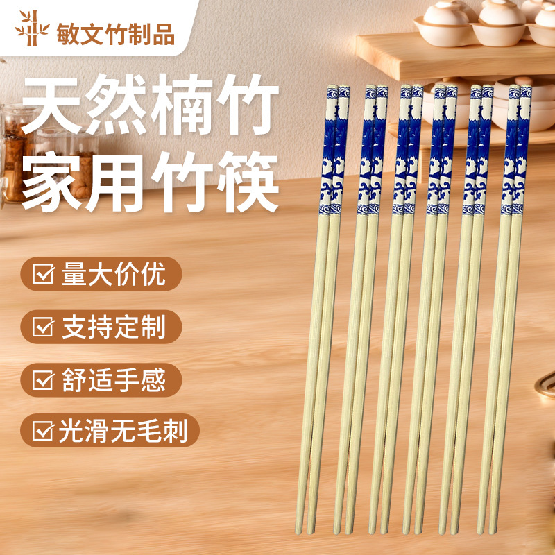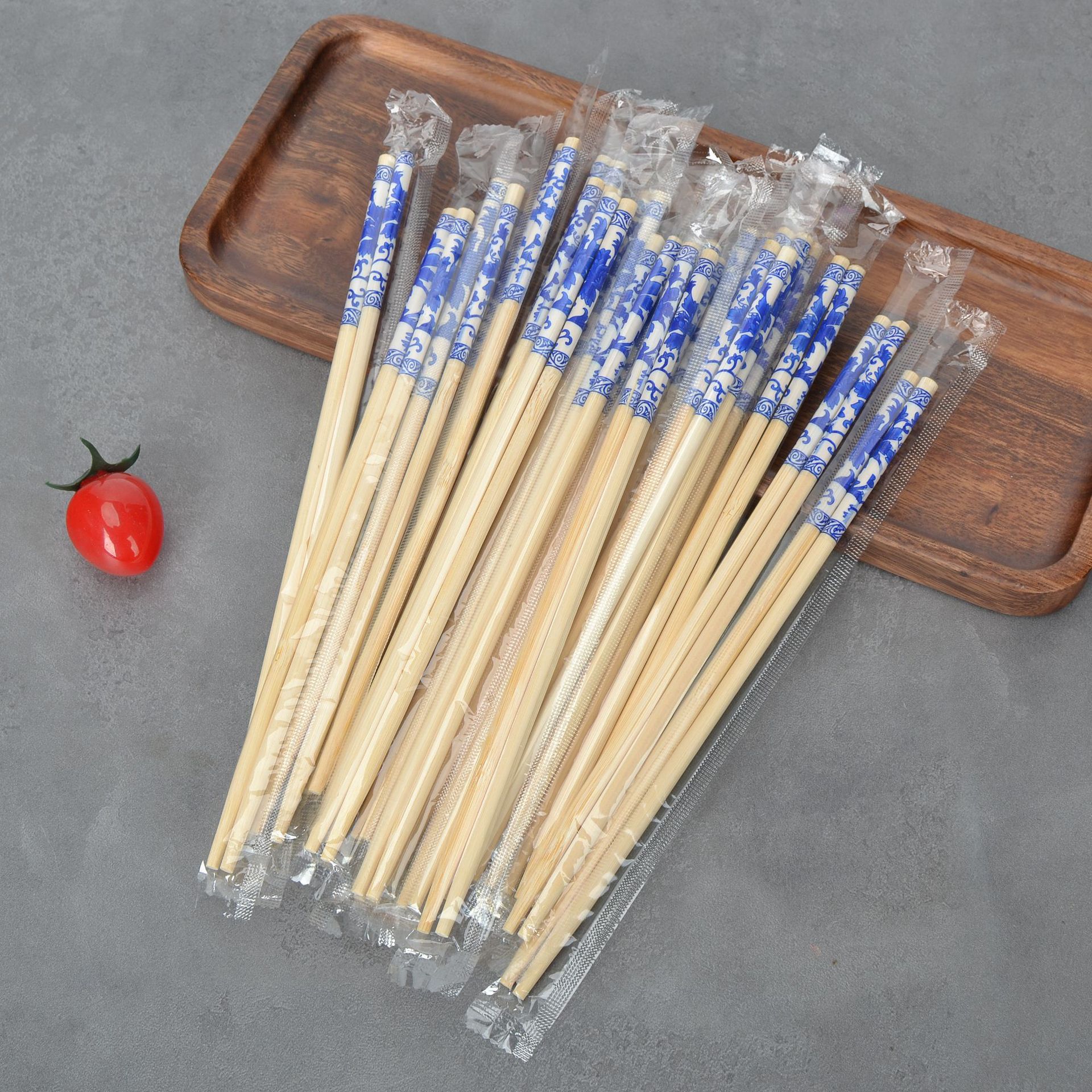 卸売り青花磁器プリント竹箸使い捨て箸商用独立包装衛生便利家庭用箸セット