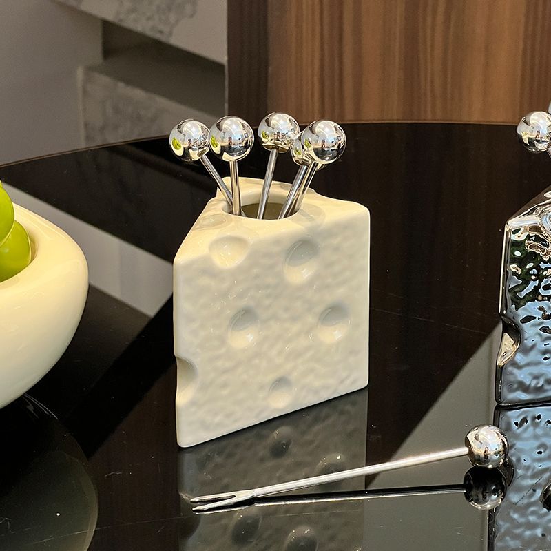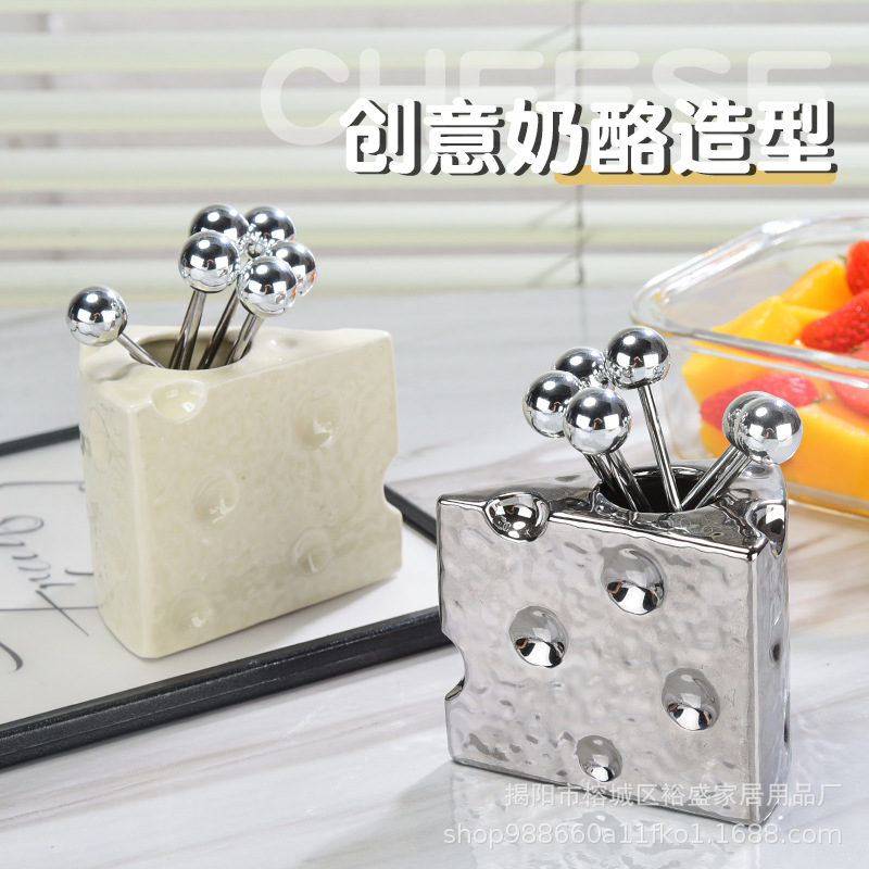 創意陶磁器チーズ缶果物フォークセット家庭用ステンレスデザートフォーク