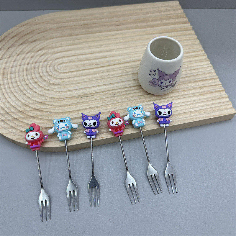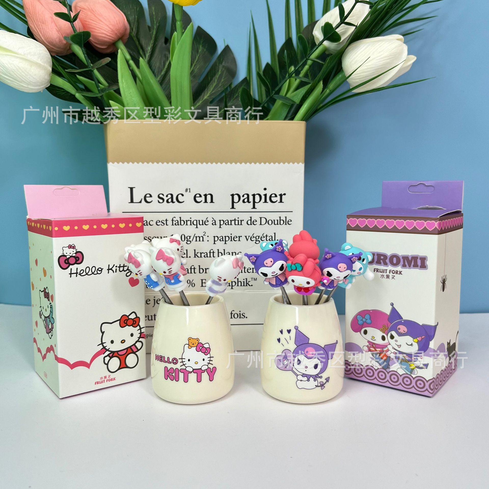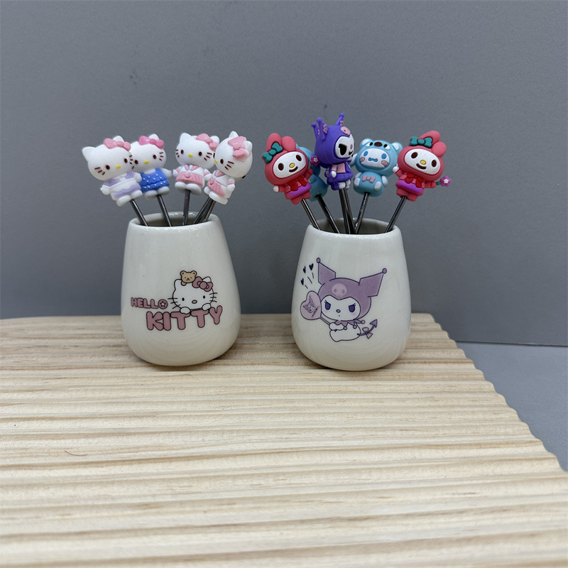家の中のサンリオ陶磁器の置物の庫洛米の果物のフォークの玉桂の犬の美楽の茎の果物のフォークktステンレスの果物の署名