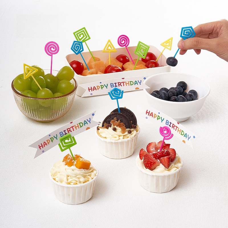 使い捨てフルーツフォーク家庭用セットプラスチック創意フルーツサインケーキデザートフォークお菓子フォーク卸売り