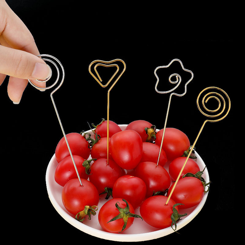304ステンレスの果物の署名のアイデアのメモの名刺は果物のお菓子の署名のフォークの果物の針の一体のカクテルの署名を挟みます。