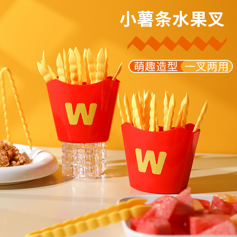 かわいい小さなフライドポテトフルーツフォークセットフルーツピック家庭用スナックフォークフルーツクリップ磁気吸収ボックス付き