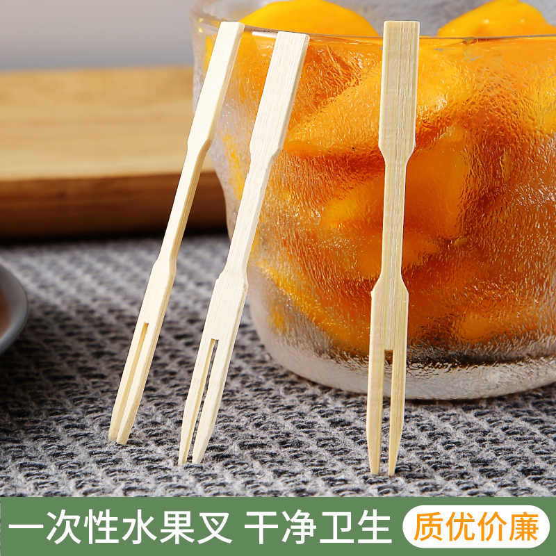 工場直売使い捨て竹フォーク竹木果物フォークktv夜場果物フォーク二歯フォーク家庭用果物フォーク