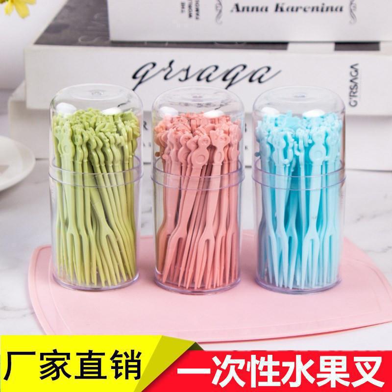 フルーツフォーク使い捨て食品級ケーキ寿司プラスチックフォーク家庭用子供用かわいい箱入り清潔フォーク卸売り