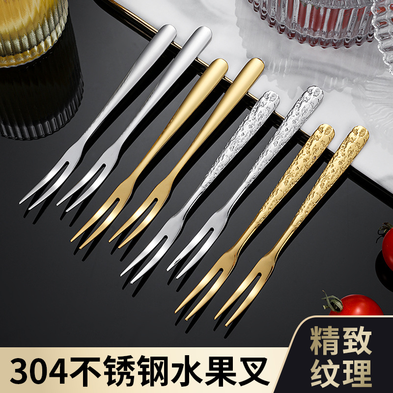 304ステンレスの果物とフォークの家庭用の小さいフォークの厚いお菓子とケーキのフォークのハイエンドの精巧な果物の署名の二歯フォーク