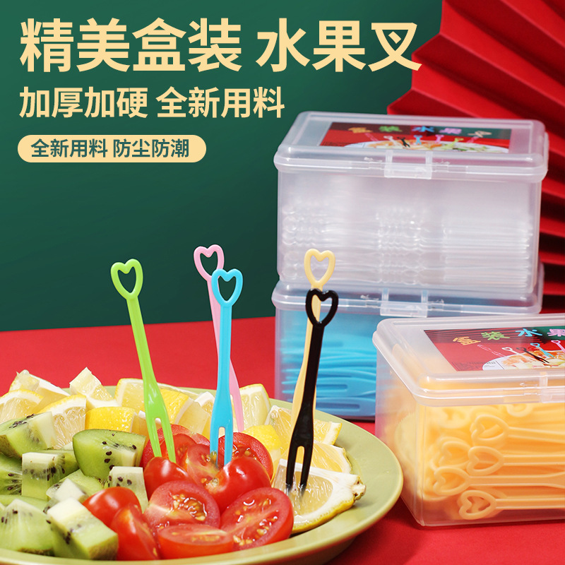 使い捨てフルーツフォーク卸売りデザートケーキフォークハート型竹節果物サイン家庭用ktvサインケース