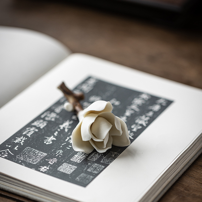 茶の寵愛の置物の逸品は純粋な手作りの陶磁器の白玉蘭の花の茶室の事務机の筆のブラケットの線香を養うことができます。