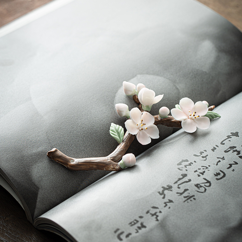 茶の寵愛の置物は純粋な手作りの陶磁器の白玉蘭の花の茶室の茶卓の筆のブラケットの線香を養うことができます。