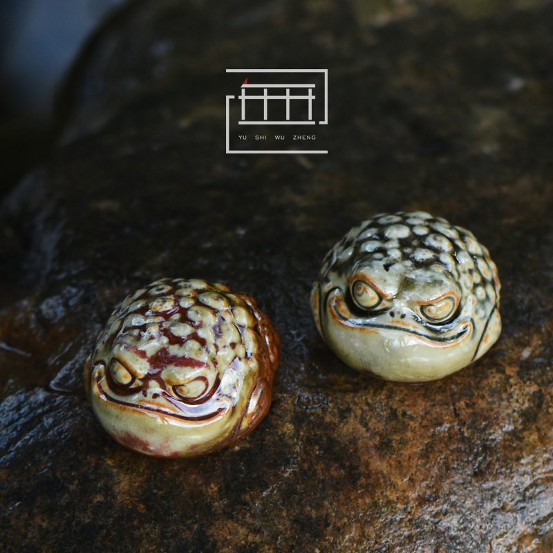 萌え趣味招財金ヒキガエル茶寵置物窯変柴焼茶道部品蓋置文房用品陶磁器鎮紙